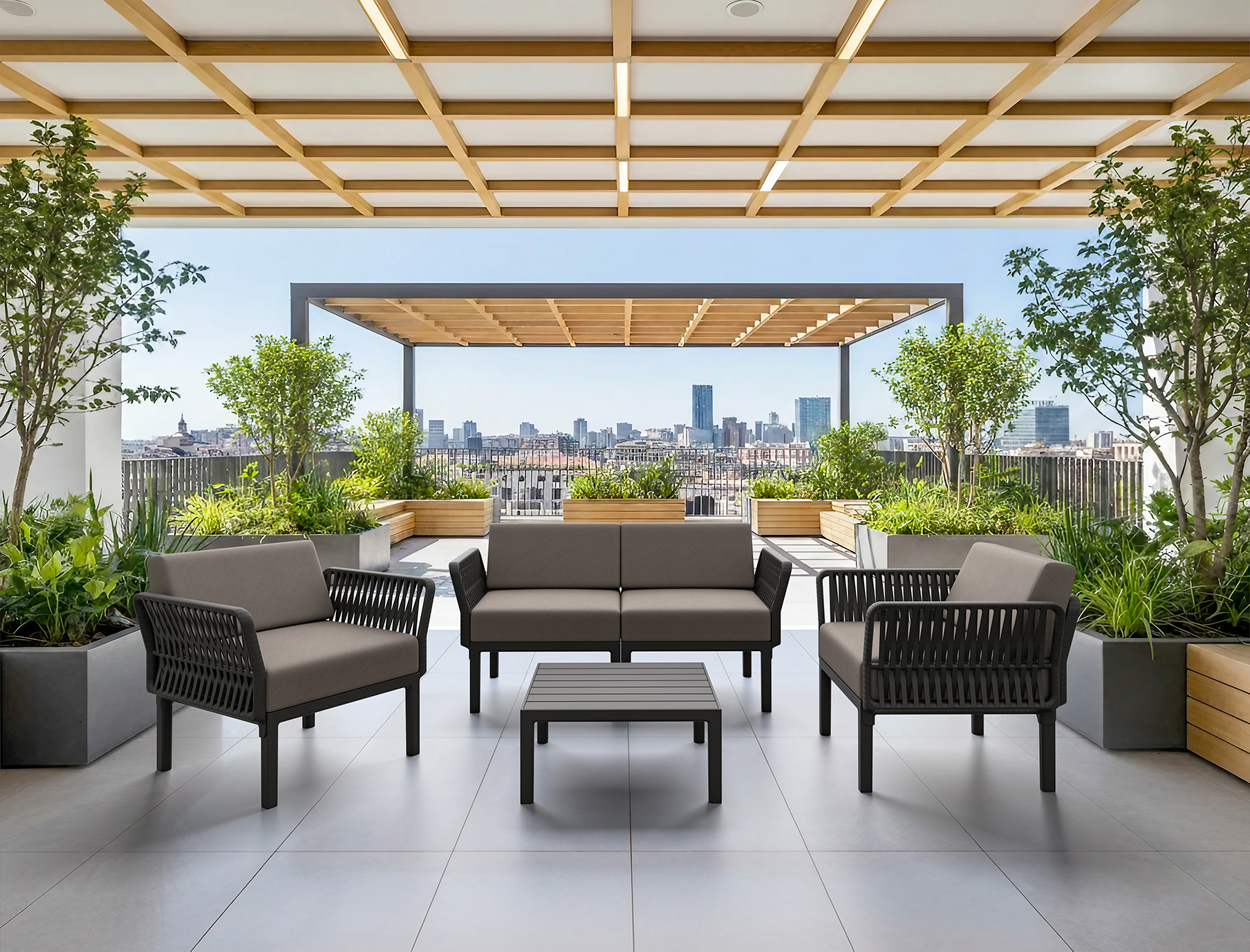 Suitable for indoor and outdoor contract use, this set is ideal for hotels, cafés, restaurants, resorts, offices, and stylish home environments.
